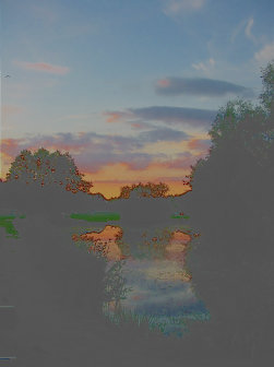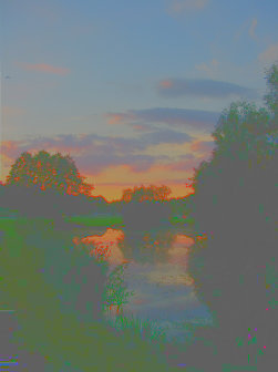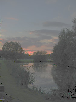 of primary colours in the darkest areas appear. This seems to be an effect of